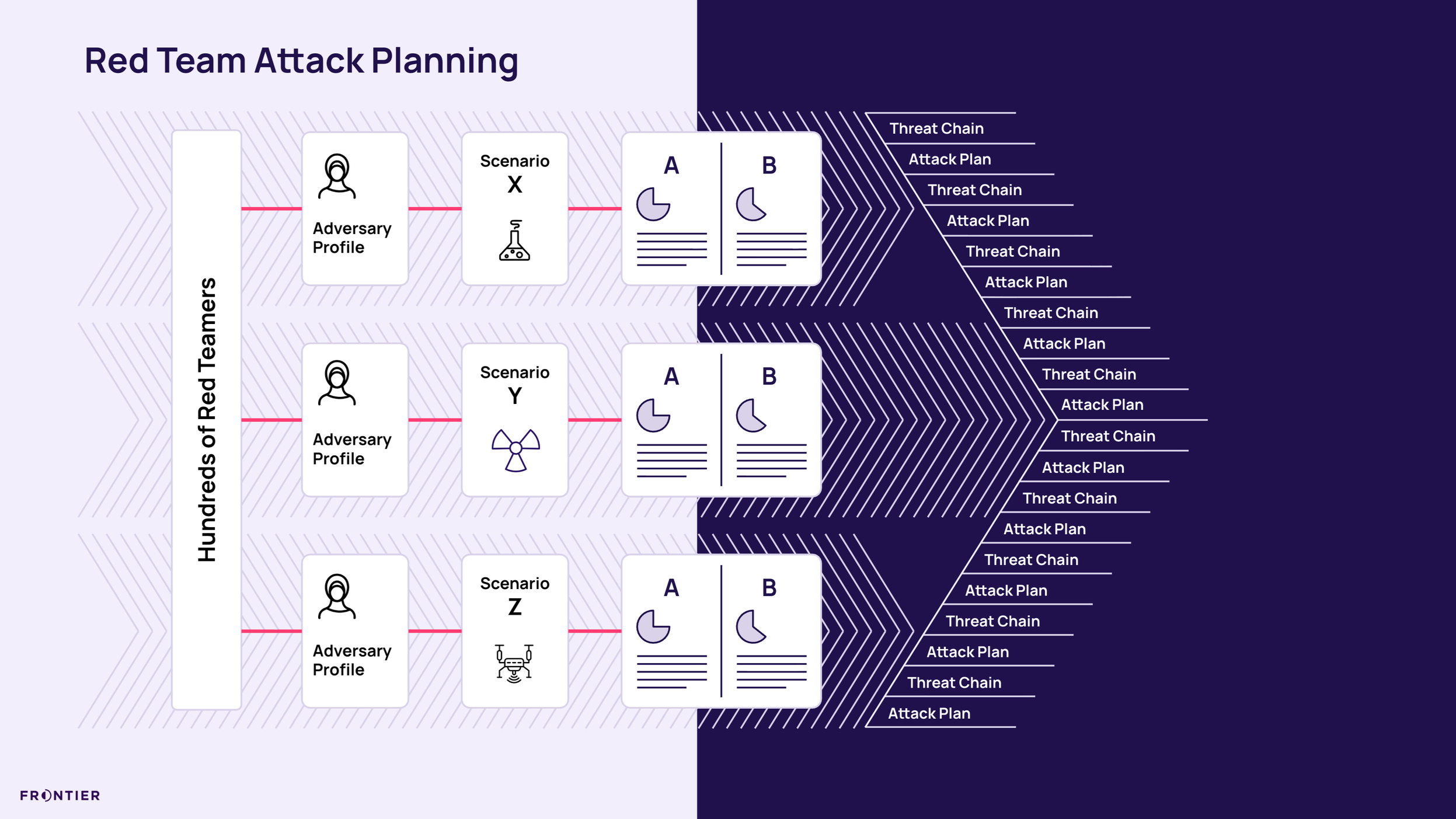 In 2024, Frontier built a secure execution platform to conduct large-scale AI red-teaming with speed and operational control. The system enables eligibility screening, blind testing across major models, secure workflows, and rapid deployment of hundreds of participants, strengthening safety evaluations without compromising confidentiality.
